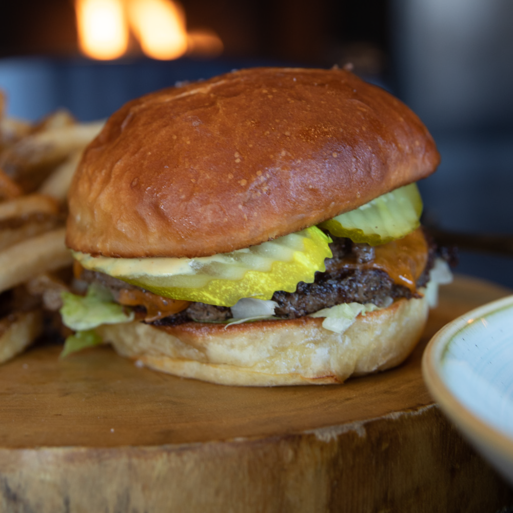 Two 100% Alberta Benchmark Ranch Angus Beef Patties, Iceberg Lettuce, Pickles, Cheddar Cheese and Park Sauce served on a Brioche Bun.