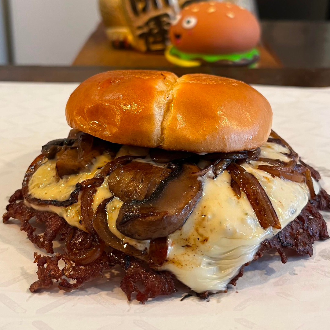 A 3 oz Smashed Patty, Swiss Cheese, Roasted Mushrooms, Onions and B2B Truffle Sauce served on a Classic Bun.