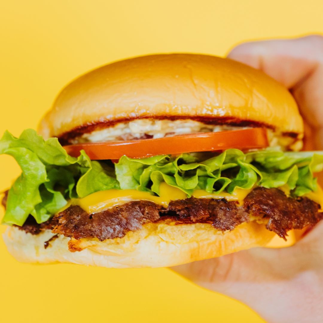 A Canadian Beef Smash Patty, American Cheese, Special Sauce, Lettuce and Tomato served on a Potato Bun.